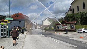 Am 13. Mai 2017 wurden die Mitglieder der Freiwilligen Feuerwehr Weißenburg zur Hochzeit von OFM Sandra Zauzal und LM Erhard Schagerl eingeladen. Es beteiligten sich alle Mitglieder bei der Hochzeitsfeier und nachdem wir das Brautpaar vor der Kirche mit einem Bogen aus Schläuchen empfingen, wurden dem Jubelpaar Blumen überreicht. Die Hochzeitsgesellschaft marschierte dann durch unsere Wasserfontäne und das Brautpaar musste symbolisch einen Brand mit der Kübelspritze löschen.