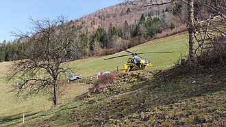 Möglichst ruhig und schonend wurde der Verunfallte der Besatzung des Hubschraubers der ÖAMTC-Flugrettung - Christophorus 15, übergeben.