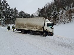2021-01-18 LKW-Bergung im Ortsteil Weißenbach
