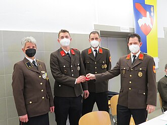 Im Anschluss wurden Lukas Bernold und Sonja Hösel zum Feuerwehrmann sowie Andreas Weissenbacher zum Oberfeuerwehrmann befördert.