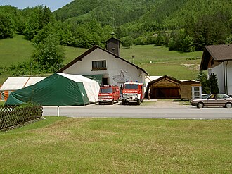 Das Feuerwehrhaus beim Weißenbachler Feuerwehrfest am 10. Juni 2004